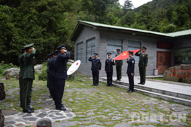 圖為錯(cuò)那邊境檢查站民警與錯(cuò)那縣武警中隊(duì)官兵共同在對(duì)印自衛(wèi)反擊戰(zhàn)前沿指揮所舊址重溫入黨誓詞 李啟書 攝