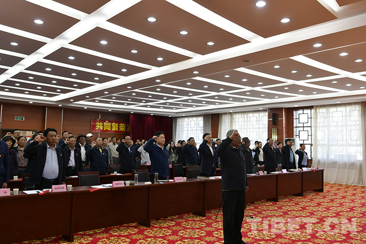 圖為7月1日,西藏自治區(qū)黨委統(tǒng)戰(zhàn)部舉行慶“七一”主題黨日活動(dòng),全體黨員重溫入黨誓詞 攝影:王媛媛