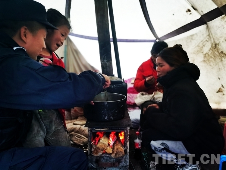 隨后,民警了解到小曲珍的家人上山挖蟲草至今未歸,孩子一直在帳篷外等待家人。民警一邊安慰小曲珍,一邊幫助她生火燒飯,耐心地陪伴孩子度過(guò)焦急的等待。