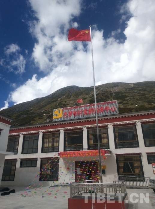 圖為杰羅布村迎風(fēng)飄揚的五星紅旗