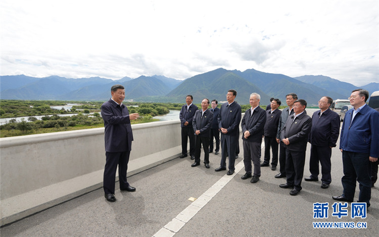 2021年7月21日上午,習(xí)近平總書記乘車來到林芝尼洋河大橋,考察雅尼濕地。遠(yuǎn)眺水波蕩漾、草木蔥蘢的雅尼濕地,聽取雅魯藏布江及尼洋河流域生態(tài)環(huán)境保護(hù)和自然保護(hù)區(qū)建設(shè)等情況。習(xí)近平強(qiáng)調(diào),要堅持保護(hù)優(yōu)先,堅持山水林田湖草沙冰一體化保護(hù)和系統(tǒng)治理,加強(qiáng)重要江河流域生態(tài)環(huán)境保護(hù)和修復(fù),統(tǒng)籌水資源合理開發(fā)利用和保護(hù),守護(hù)好這里的生靈草木、萬水千山。(圖片來源:新華網(wǎng) 攝影:新華社記者 李學(xué)仁)