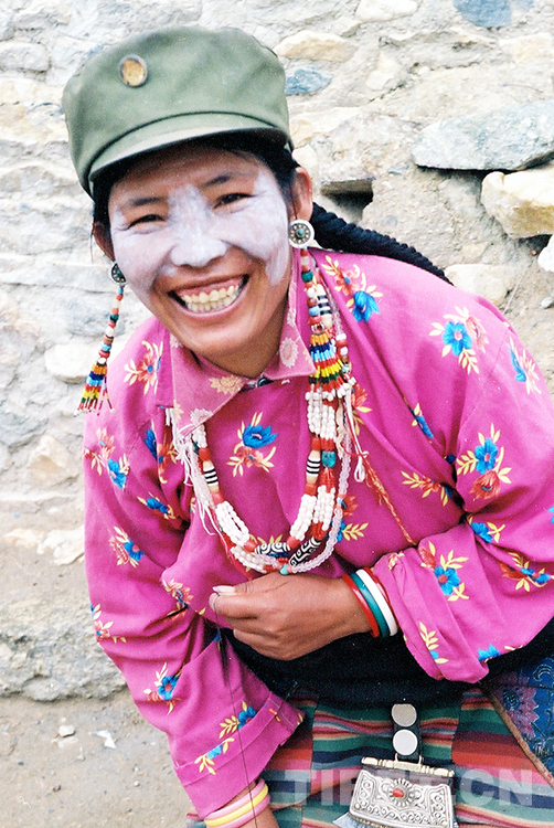 這是藏北尼瑪縣文部鄉(xiāng)過去使用牦牛奶來保護(hù)皮膚的藏族婦女(唐召明2001年攝)