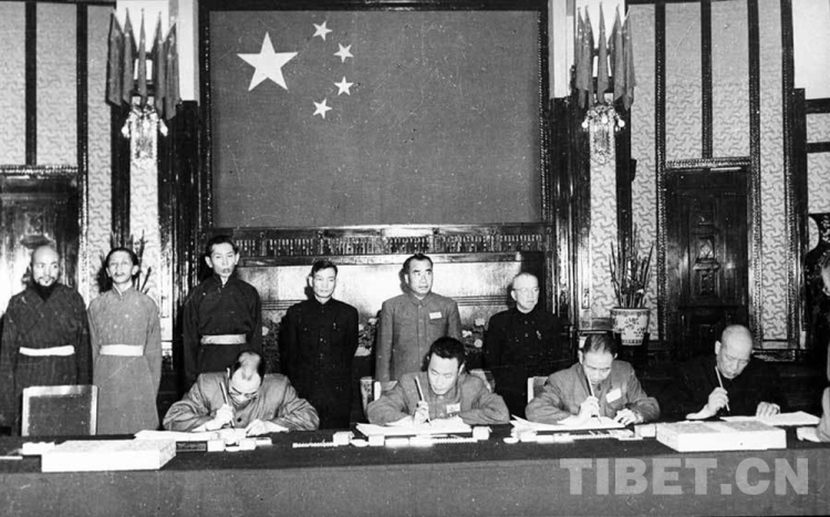 圖為《中央人民政府和西藏地方政府關于和平解放西藏辦法的協(xié)議》簽訂現(xiàn)場