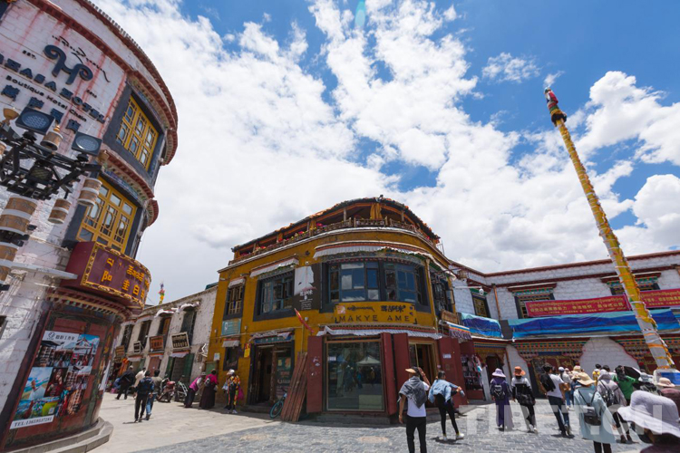 八廓街的南面,矗立著不少巨商、貴族的府邸,如邦達倉大院,雕梁畫棟、層臺累榭、美輪美奐。