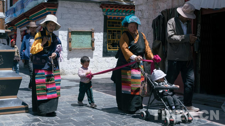 圖為在八廓街上散步的一家人 攝影:鄭朔