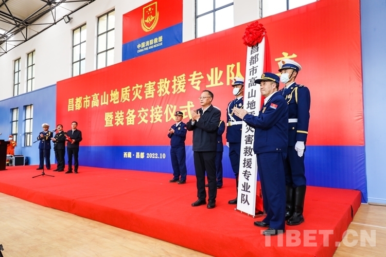 圖為昌都市高山地質(zhì)災害救援專業(yè)隊成立暨裝備交接儀式現(xiàn)場