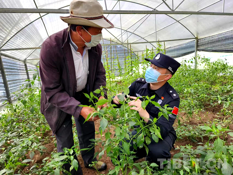 格當(dāng)邊境派出所所長索朗頓珠再三向民警強調(diào):“讓褲腿帶上泥,讓法治刻心里!”接到“任務(wù)”的民警們紛紛出發(fā)。看著布龍村種植基地里有說有笑的村民們,民警饒睿便加入進去。他手上拿著中國地圖,向村民講解《中華人民共和國陸地國界法》和我國陸地國界的基本情況,教育引導(dǎo)群眾堅決與邊境地區(qū)的違法犯罪行為作斗爭,發(fā)現(xiàn)違法犯罪行為第一時間與派出所聯(lián)系。