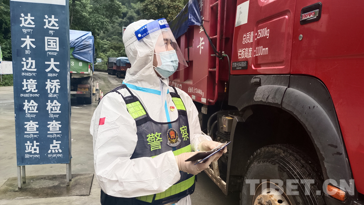 8點,雨季的墨脫,太陽難得露了臉。達木邊境檢查站民警卓井山和李建已經(jīng)穿上防護服,戴好口罩,站在路邊,開始了一天忙碌的工作?!巴灸?,請出示您的邊境通行證、健康碼、行程碼和核酸檢測報告?!弊烤骄戳藗€禮,認(rèn)真核查車中人員的信息后,又對車內(nèi)進行了仔細(xì)的檢查,確保沒有違禁物品,最后對司機大哥說:“最近雨季,道路濕滑,路上注意安全,再見!”