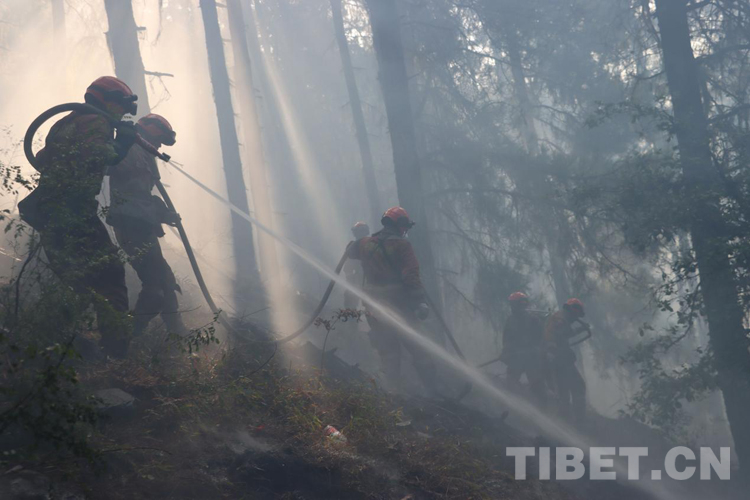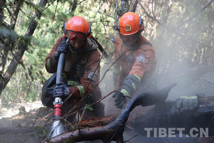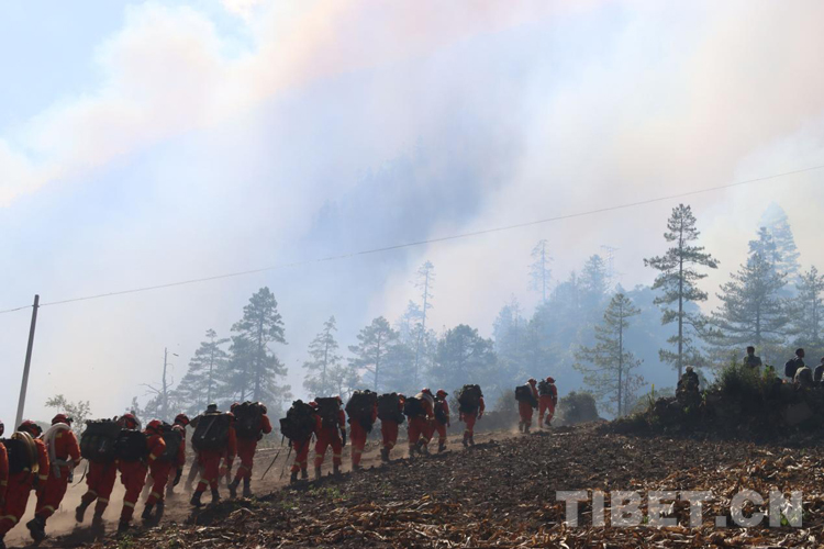 火場上,不說有感天動地的故事,但是那種“無畏火魔、不怕犧牲、舍我其誰、團結(jié)協(xié)作”的故事卻到處可見。那天,我們在接警后,第一時間趕赴現(xiàn)場,當(dāng)看到一條長長的火線猶如一條蜿蜒的巨龍盤旋在空檔村山腰,火舌在大風(fēng)助威下翻滾著向南側(cè)撲去時,飛哥和我各帶領(lǐng)10名黨員骨干以南北兩翼夾擊的陣勢迎戰(zhàn)火魔。在高達2800米的原始林區(qū),夜里溫度接近-5℃,槍頭手高琪已全身上下濕透并伴隨冰片的出現(xiàn),隱約透著讓人冷顫的寒光,顫抖的身體讓槍頭不斷左搖右擺,但他毅然肩扛槍頭,勇斗火魔。撲救完畢后,剛要準(zhǔn)備休整,中隊接到殲滅山頂火點的任務(wù),火情就是命令,指戰(zhàn)員背著沉重的裝備在近70-80度的亂石陡坡上,抓著樹枝一步步向上攀爬,16年兵齡的王建紅在爬山過程中使勁喘息,即使空氣中彌漫著飛舞的灰,也為吸取更多的氧氣保持體力;接近山頂時,一顆直徑約80cm的滾石從山頂滾落,體型弱小的二級消防士曹橋在緊促的避險哨音中采取緊急避險措施成功躲避,滾石與他擦肩而過,但危險的環(huán)境未能抑制他戰(zhàn)斗的決心。中隊指戰(zhàn)員暢談此次滅火作戰(zhàn)感受時,都紛紛笑言:“我們從海拔2300米打到了3700米,相當(dāng)于從察隅到了拉薩?!?1日,中隊轉(zhuǎn)戰(zhàn)火場西南線,此時經(jīng)過5天的連續(xù)奮戰(zhàn),指戰(zhàn)員的思考能力和興奮的感覺消失殆盡,只剩下機械式行走的軀體,膝蓋有舊傷的戰(zhàn)斗班班長王明因為超負荷運動已疼痛難忍,但他在咬牙堅持。班長宋遠金、扎西歐珠主動擔(dān)當(dāng)不畏艱險,從不到2300多米的地方,背著滅火裝備和滿滿的水桶,爬到4000米的山頂排除隱患,清理煙點。