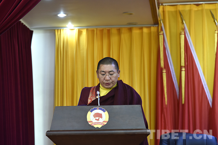 圖為12月12日,拉薩市政協(xié)十二屆三次會議第二次全體會議現(xiàn)場,宗教界委員曲仲·阿旺強久旦增加措發(fā)言 攝影:王媛媛