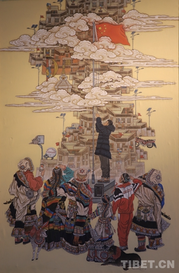 “畫家們?cè)谘永m(xù)深厚傳統(tǒng)文化,彰顯西藏唐卡繪畫高超技藝的同時(shí),不固守畫派風(fēng)格特色,用創(chuàng)新的方式聚焦偉大時(shí)代,描繪美好生活,歌頌西藏與祖國(guó)同行的盛世圖景?!蔽鞑刈灾螀^(qū)文聯(lián)副主席尹小林說。