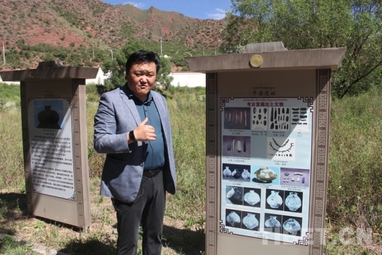 圖為洛松曲扎在卡若遺址介紹文物信息攝影:王茜