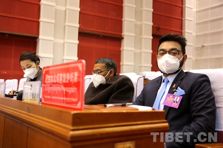 圖為尼泊爾駐拉薩總領(lǐng)事納瓦拉杰·達(dá)卡爾、領(lǐng)事薩賓·巴特拉伊旁聽會(huì)議 攝影:王佳豪