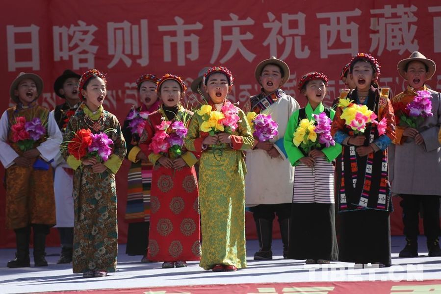 圖為紀念西藏百萬農(nóng)奴解放63周年時,日喀則的小朋友載歌載舞,歡慶節(jié)日 攝影:王佳豪