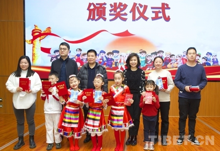 西藏文化博物館負(fù)責(zé)人扎呷、中國人民大學(xué)附屬中學(xué)第二分校校長龔月萍先后致辭?;顒又校袊貙W(xué)研究中心西藏文化博物館向捐獻西藏主題作品的畫家吳茜女士頒發(fā)證書,并發(fā)布關(guān)于涉藏文物捐贈的倡議書。同時,為“童心永向黨,喜迎二十大”少年兒童書畫作品展的活動組織者、指導(dǎo)老師以及獲獎小作者頒發(fā)了獎品和證書。
