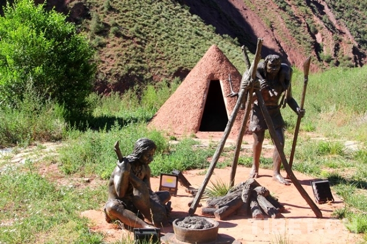 “卡若遺址從1977年發(fā)現(xiàn)之后,先后進行了4次發(fā)掘。按照國家文物局的要求,我們建立了遺址公園,并根據(jù)卡若遺址的考古報告,按照三個時間先后的順序進行了三組的場景復(fù)原,為的是向后人更好地展示卡若遺址以及所蘊含的文化。”