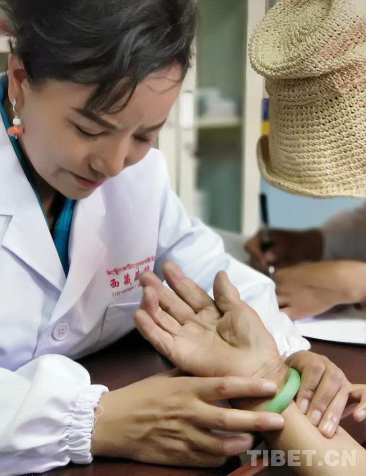 圖為全國政協(xié)委員、西藏藏醫(yī)藥大學副教授明吉措姆為患者診療