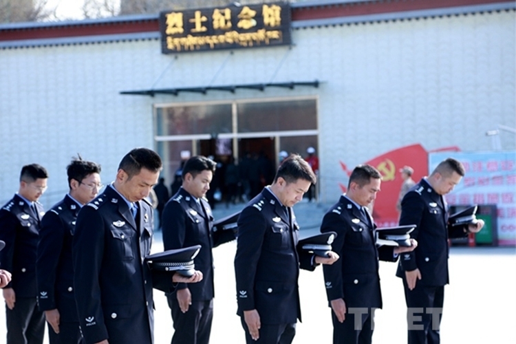 圖為西藏邊檢總站執(zhí)法調(diào)查支隊(duì)民警向烈士默哀
