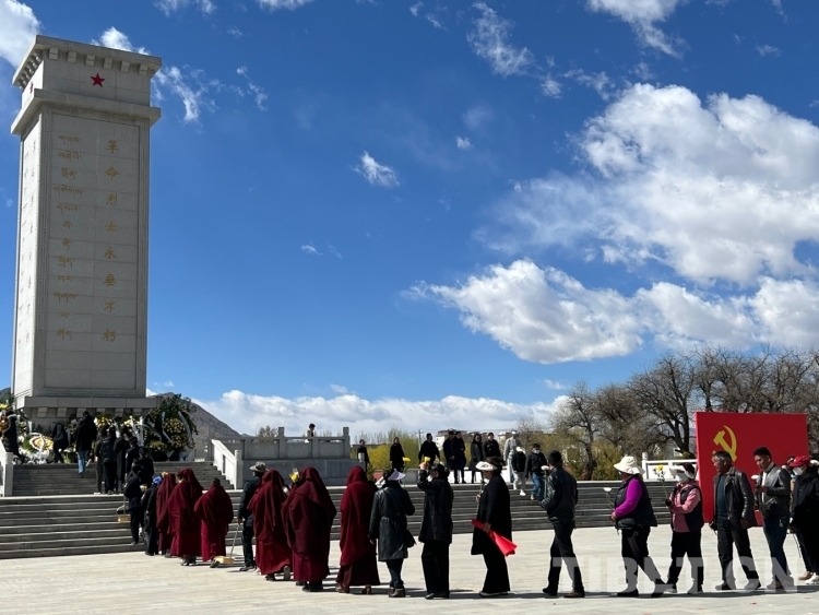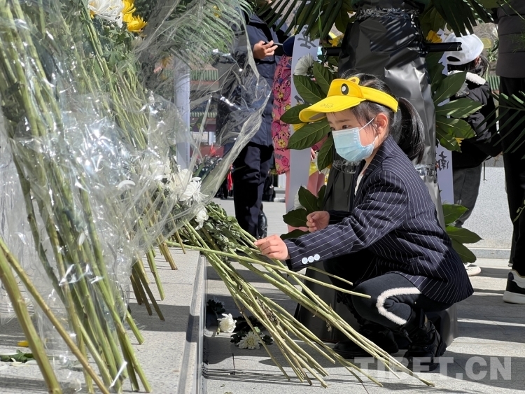 圖為社會(huì)各界人士向革命先烈敬獻(xiàn)鮮花 攝影:德吉卓瑪