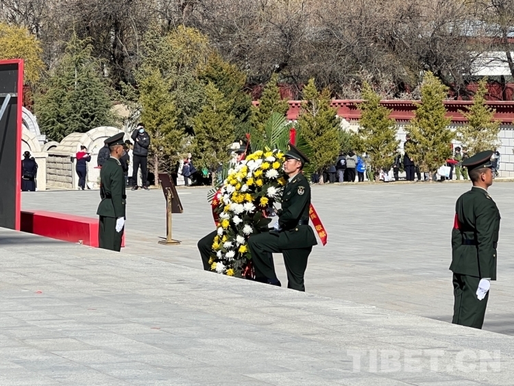圖為軍警代表向革命先烈敬獻(xiàn)鮮花 攝影:德吉卓瑪