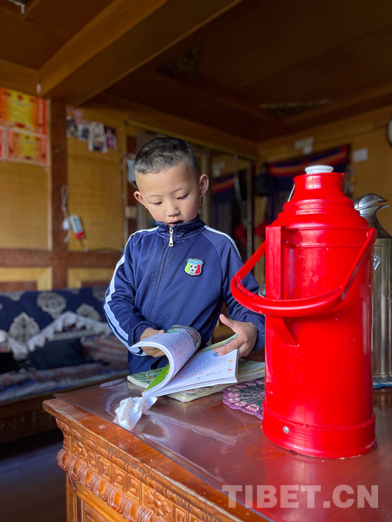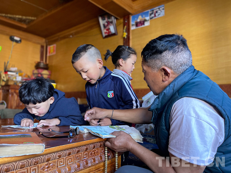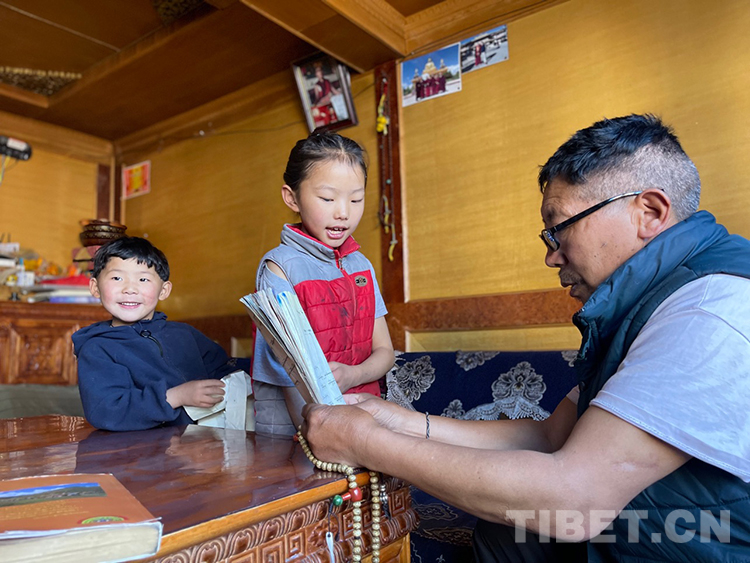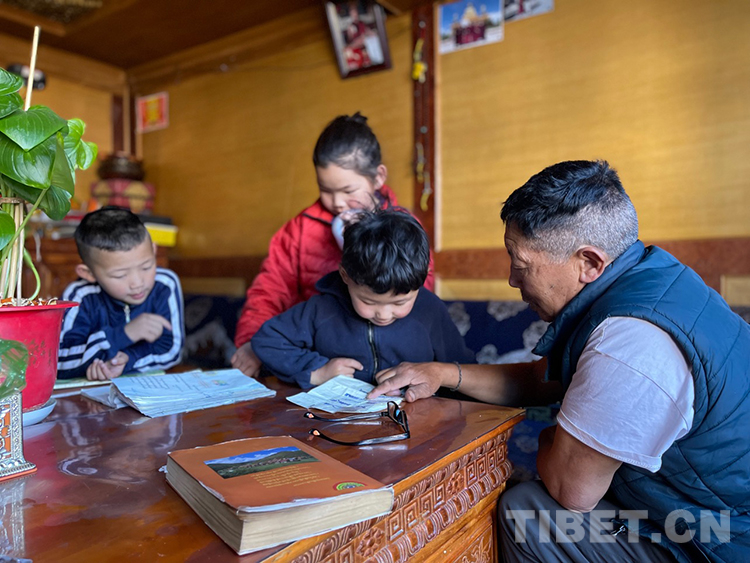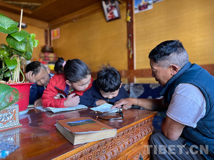 阿噶大爺自己粗通藏文,能督促和檢查藏文作業(yè),孩子們則非常享受爺爺驗(yàn)收他們的學(xué)習(xí)成果,每次都爭先恐后地請爺爺聽自己的發(fā)音和背誦是否準(zhǔn)確。平時老師還會安排上網(wǎng)課,因此不會耽誤他們的學(xué)業(yè)。