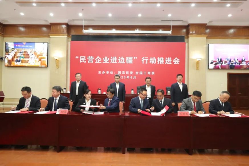 會(huì)議指出,“民營(yíng)企業(yè)進(jìn)邊疆”行動(dòng)是國(guó)家民委、全國(guó)工商聯(lián)以習(xí)近平新時(shí)代中國(guó)特色社會(huì)主義思想為指導(dǎo),深入貫徹落實(shí)黨的二十大精神和習(xí)近平總書(shū)記關(guān)于加強(qiáng)和改進(jìn)民族工作的重要思想、關(guān)于民營(yíng)經(jīng)濟(jì)發(fā)展的重要論述精神,動(dòng)員引導(dǎo)廣大民營(yíng)企業(yè)積極參與邊疆地區(qū)建設(shè)的重要舉措。要認(rèn)真貫徹落實(shí)黨中央關(guān)于“加強(qiáng)邊疆地區(qū)建設(shè),推進(jìn)興邊富民、穩(wěn)邊固邊”重大決策部署,深入貫徹落實(shí)習(xí)近平總書(shū)記近日在內(nèi)蒙古考察時(shí)所作重要講話精神,堅(jiān)持以鑄牢中華民族共同體意識(shí)為主線,站在強(qiáng)國(guó)建設(shè)、民族復(fù)興的戰(zhàn)略高度加強(qiáng)邊疆地區(qū)建設(shè),扎實(shí)推動(dòng)“民營(yíng)企業(yè)進(jìn)邊疆”行動(dòng),助力邊疆民族地區(qū)高質(zhì)量發(fā)展,讓各族人民實(shí)實(shí)在在感受到推進(jìn)共同富裕在行動(dòng)、在身邊。