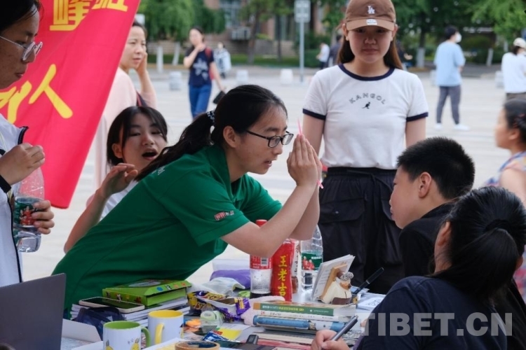 中國(guó)西藏網(wǎng)訊 “同學(xué),來(lái)看一下我們的雜志,義賣所得將用于為西藏自治區(qū)山南市扎囊縣吉汝鄉(xiāng)小朋友購(gòu)買學(xué)習(xí)和生活用品?!薄巴瑢W(xué),請(qǐng)?jiān)诿餍牌?,寫下?duì)雪域高原孩子們的祝福與寄語(yǔ)吧。”“同學(xué),請(qǐng)隨意挑選,也能以物換物。”……6月11日,在中國(guó)農(nóng)業(yè)大學(xué)奧運(yùn)場(chǎng)館西側(cè)跳蚤市場(chǎng),伴隨著中國(guó)農(nóng)業(yè)大學(xué)峰云社人文科考隊(duì)員熱情洋溢的介紹,“情系支教,愛(ài)滿山南”雜志義賣活動(dòng)開(kāi)始了。