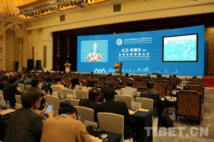 圖為大衛(wèi)·布萊爾在第五屆中國(guó)西藏旅游文化國(guó)際博覽會(huì)主旨論壇發(fā)表演講 攝影:王佳豪