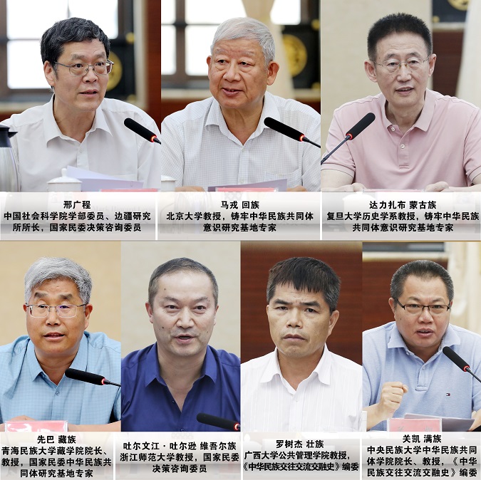 中國社會科學院學部委員邢廣程、北京大學教授馬戎(回族)、復旦大學教授達力扎布(蒙古族)、青海民族大學教授先巴(藏族)、浙江師范大學教授吐爾文江·吐爾遜(維吾爾族)、廣西大學教授羅樹杰(壯族)、中央民族大學教授關凱(滿族)等7位學者發(fā)言,就中華文明五大特性與鑄牢中華民族共同體意識、在實事求是基礎上堅定中華民族的文化自信、中華文明的統(tǒng)一性與包容性、青藏高原是中國古代文化“場”中重要區(qū)域之一、建設中華民族現(xiàn)代文明與中華民族共同體是文化潤疆的重要方向、壯族文化的形成發(fā)展是中華文明五大特性的生動體現(xiàn)、中華民族現(xiàn)代文明與中華民族共同體建設等多方面暢談學習體會。大家一致認為,習近平總書記在文化傳承發(fā)展座談會上發(fā)表的重要講話,闡明了中華文明的突出特性,揭示了“兩個結合”的深刻內涵,強調了建設中華民族現(xiàn)代文明的重要原則。中華文化是各民族優(yōu)秀文化的集大成,各民族共同創(chuàng)造了偉大悠久的中華文明,中華文明的突出特性在各民族文化中都有體現(xiàn),國土不可分、國家不可亂、民族不可散、文明不可斷是所有中華民族成員的共同信念。大家一致表示,要以習近平總書記重要講話精神為引領,牢牢把握中華文明的五大突出特性,深入開展理論創(chuàng)新,多出高質量研究成果,為中華民族現(xiàn)代文明建設和中華民族共同體建設作出積極貢獻。