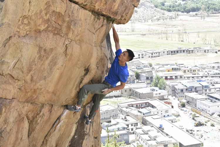作為本次比賽的主辦地,拉薩市城關區(qū)奪底街道吉倉自然巖壁場地,具有得天獨厚的自然地理優(yōu)勢,是舉辦自然巖壁攀巖賽事的首選之地。運動員爬上陡峭的木乃伊峰,轉頭就可以俯瞰拉薩市區(qū)。