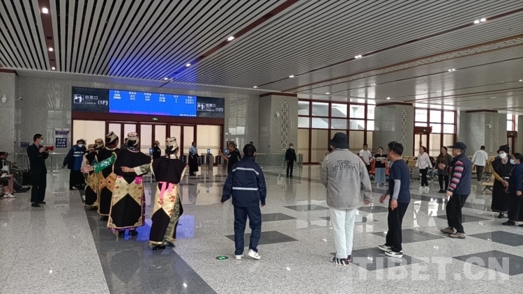 中國西藏網(wǎng)訊 2023年6月25日,拉薩火車站、林芝火車站內(nèi)異常熱鬧。在拉薩火車站,準(zhǔn)備乘坐C925次旅客列車前往林芝的旅客和車站“天路格桑花”服務(wù)隊的工作人員一起開展著競答互動小游戲,復(fù)興號列車紀(jì)念筆、車站卓瑪工作室卡通形象鑰匙扣、旅行雜志等小禮品深受旅客喜愛。在林芝火車站,工作人員和旅客跳起了熱情的鍋莊,用特有的方式慶祝拉林鐵路開通兩周年。