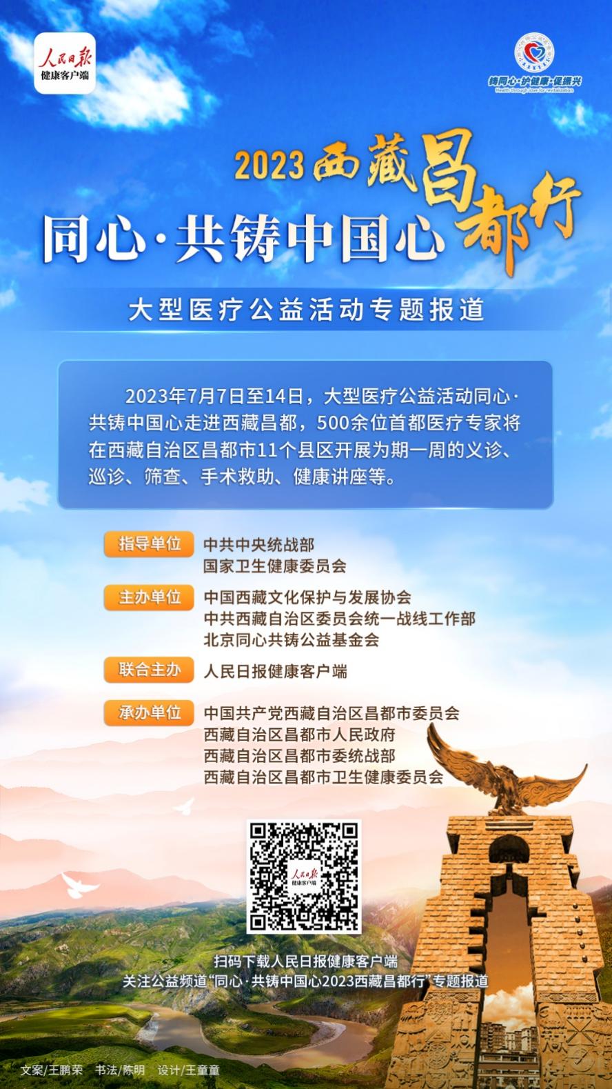 本次活動由中共中央統(tǒng)戰(zhàn)部、國家衛(wèi)健委指導(dǎo),中國西藏文化保護與發(fā)展協(xié)會、中共西藏自治區(qū)委員會統(tǒng)一戰(zhàn)線工作部、北京同心共鑄公益基金會主辦,人民日報健康客戶端聯(lián)合主辦,將結(jié)合當?shù)亓餍胁W(xué)特點和醫(yī)療衛(wèi)生事業(yè)發(fā)展現(xiàn)狀,開展疾病篩查、義診巡診、高原手術(shù)、專業(yè)幫扶、健康科普和愛心捐贈等多種形式的健康幫扶工作。