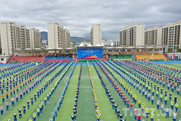 圖為2023年“奔跑吧?少年”兒童青少年主題健身活動西藏分會場啟動儀式現(xiàn)場 攝影:旦曲