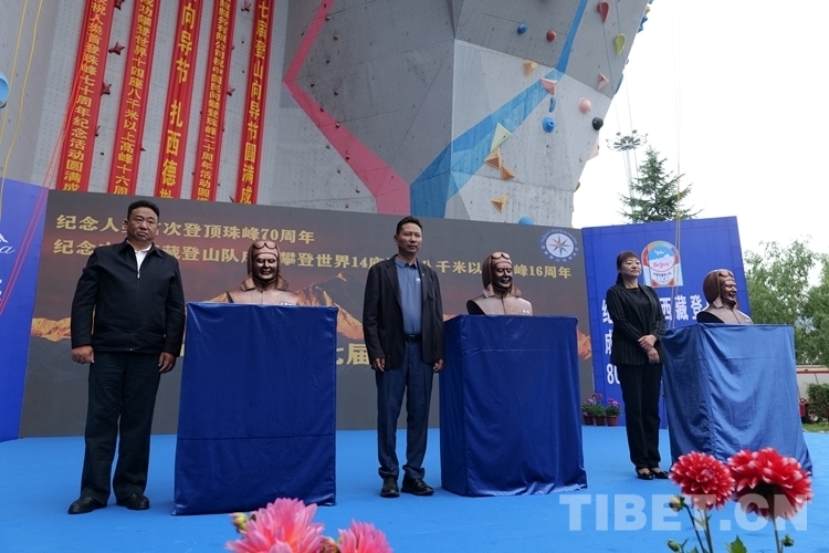 圖為開幕式現場為王富洲、貢布、屈銀華雕塑揭牌 由活動主辦方供圖