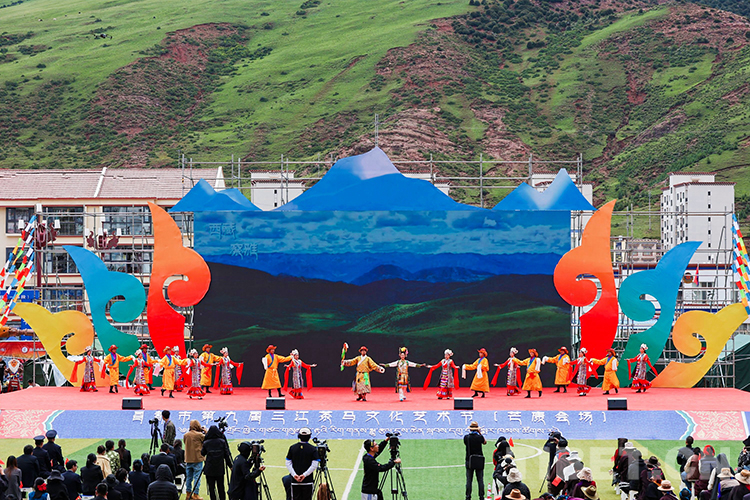 開幕式文藝演出群英薈萃、精彩紛呈、高潮迭起。來自云南德欽縣、四川巴塘縣,昌都市康巴文化藝術(shù)團(tuán)、昌都市群藝館以及左貢縣、類烏齊縣、察雅縣、芒康縣藝術(shù)團(tuán)的演出隊(duì)依次登臺(tái)表演,通過歌唱、舞蹈、戲曲等藝術(shù)手法和舞臺(tái)呈現(xiàn)方式,帶給觀眾一次難忘的視聽盛宴。