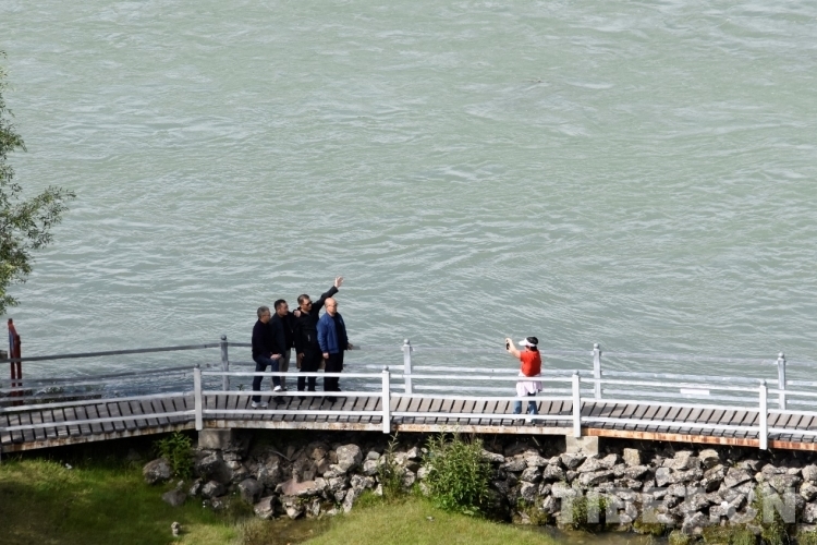 圖為7月22日,游客在雅尼國家濕地公園留影 攝影:次旦拉姆