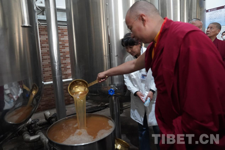 班禪在藏醫(yī)院次仁院長等專家們的陪同下,對藏醫(yī)院院史陳列館、索瓦日巴展陳館、藥浴中心和住院部腦病科進行調(diào)研。在各陳列館班禪對醫(yī)療陳設(shè)、藏醫(yī)發(fā)展歷史、藏醫(yī)歷算等都做了詳細的聆聽和詢問,對國家級保護動物相關(guān)藥品,瀕危動物瀕危植物的使用方法和流程等都做了詳細了解。