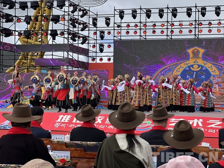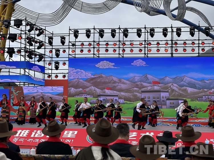 開幕式在莊嚴(yán)的國歌聲中拉開序幕。開幕式文藝演出聚焦“堆諧故里,藝術(shù)之鄉(xiāng)”,由拉孜縣藝術(shù)團(tuán)、民間業(yè)余演出隊(duì)、九大藏戲隊(duì)、少兒藝術(shù)隊(duì),芒普鄉(xiāng)、扎西崗鄉(xiāng)、柳鄉(xiāng)藝術(shù)隊(duì)演出藏戲、堆諧、諧欽(“諧”藏語意為歌舞,“欽”即盛況或隆重之意)、洛諧(定日縣為主的南部歌舞)、果諧(圓圈舞)以及區(qū)內(nèi)知名歌手演唱歌曲組成。整個演出融合傳統(tǒng)民族非遺文化與現(xiàn)代歌舞元素,演出內(nèi)容既富有傳統(tǒng)特色又極具時代魅力,充分展示了拉孜各族人民昂揚(yáng)向上、團(tuán)結(jié)奮進(jìn)、開放包容的精神面貌。