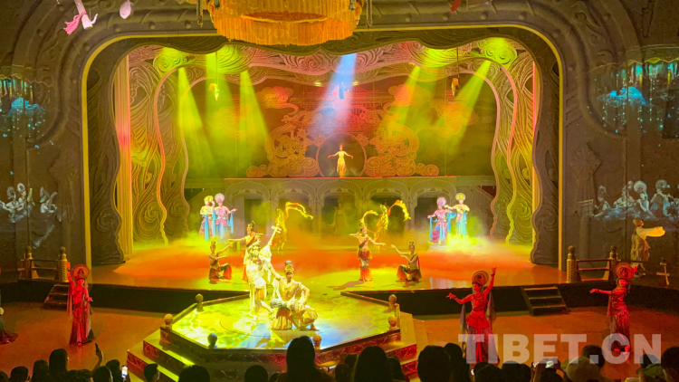 圖為全球首部洞窟式沉浸體驗(yàn)劇《樂動(dòng)敦煌》演出現(xiàn)場(chǎng),向世界傳播敦煌文化之美 攝影:趙振宇