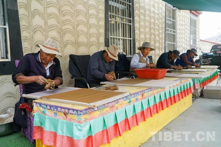 在318國道吞巴鎮(zhèn)沿線,一排排晾曬整齊的藏香,一位位正在制香的手工藝人,一家家規(guī)模不小的藏香公司,成為往來車輛駐足最久的地方。