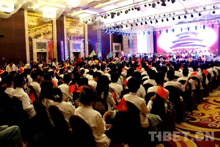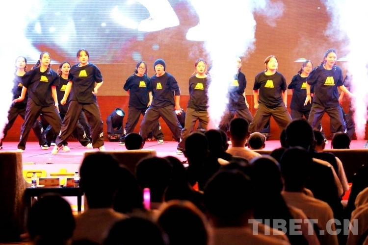 圖為西藏自治區(qū)第五屆大學(xué)生校園文化藝術(shù)節(jié)暨首屆大學(xué)生藝術(shù)展演開(kāi)幕式現(xiàn)場(chǎng) 攝影:王佳豪