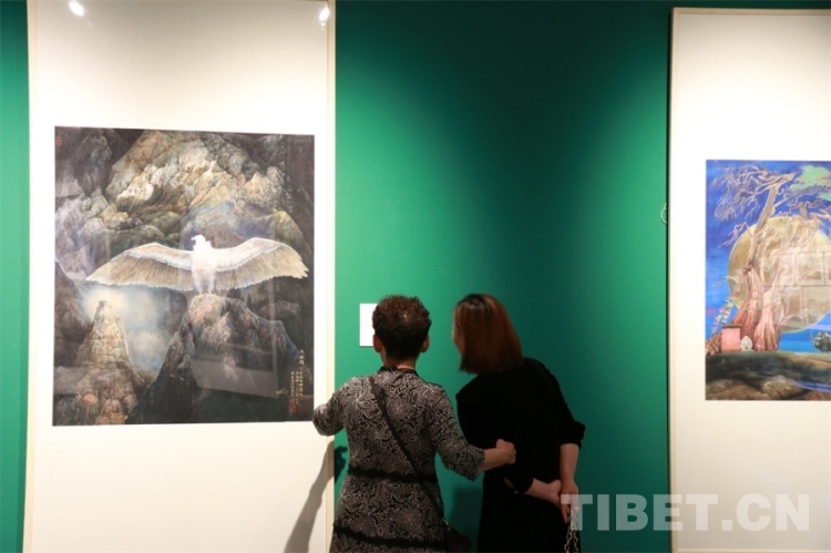 在繪畫藝術(shù)展現(xiàn)場,觀眾們在不同的畫作前安靜地駐足欣賞。王女士向記者表示,“我特別喜歡《極地的夢》這幅作品,看的時候能感受到尼瑪澤仁老師豐富的內(nèi)心。靜看這幅畫,我仿佛看到了更廣闊的世界,也覺得我們應(yīng)該時刻保持對大自然的敬畏和感恩之心?!痹?/span>名為《元蕃瑞和圖》的巨幅作品前停留良久的鞏先生向記者表示,“這幅畫的表現(xiàn)很驚艷,色彩感和故事感都特別好。我在欣賞畫作的時候,也能了解到一些傳統(tǒng)和歷史的內(nèi)容?!?/span>