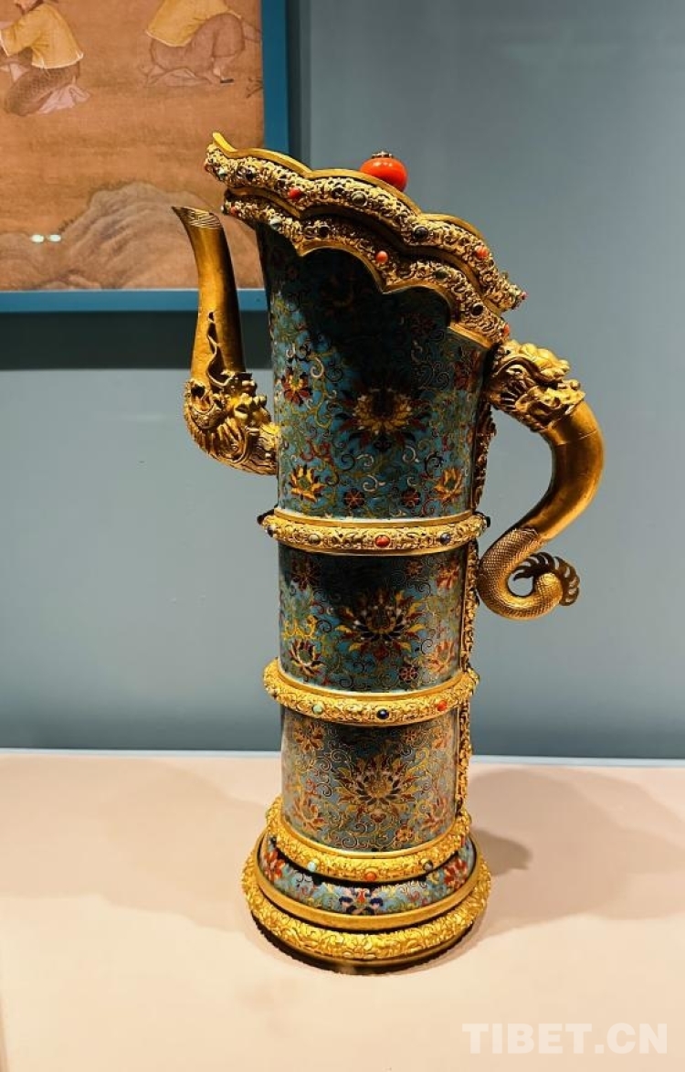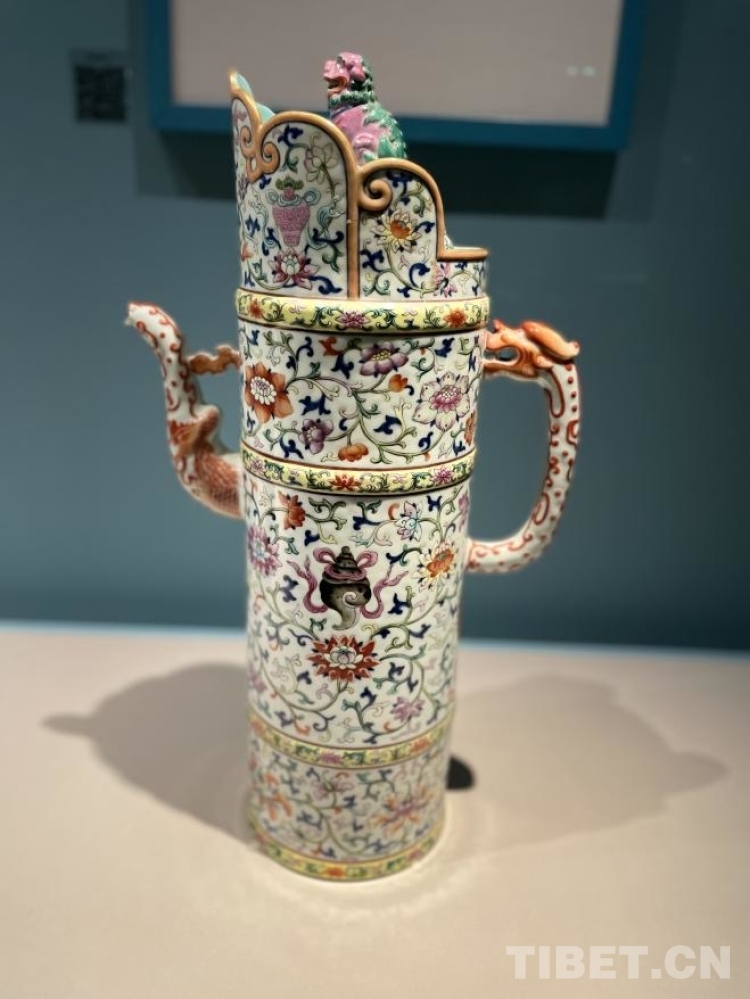 多穆壺是蒙、藏、滿等民族盛裝奶茶或熬制酥油茶的器皿,多穆為藏語(yǔ)發(fā)音,即奶茶壺之意。其形制各異、材質(zhì)有別,功用亦不相同。自康熙時(shí)期開始,清宮便制作有木質(zhì)、琺瑯、漆器、瓷器等各種材質(zhì)的多穆壺。故宮博物院收藏的粉彩八吉祥纏枝蓮紋多穆壺、銅胎掐絲琺瑯勾蓮紋多穆壺、紫漆描金纏枝蓮紋皮胎多穆壺等。精美的器具和醇香的奶茶一道構(gòu)成了清代宮廷獨(dú)特的奶茶文化。