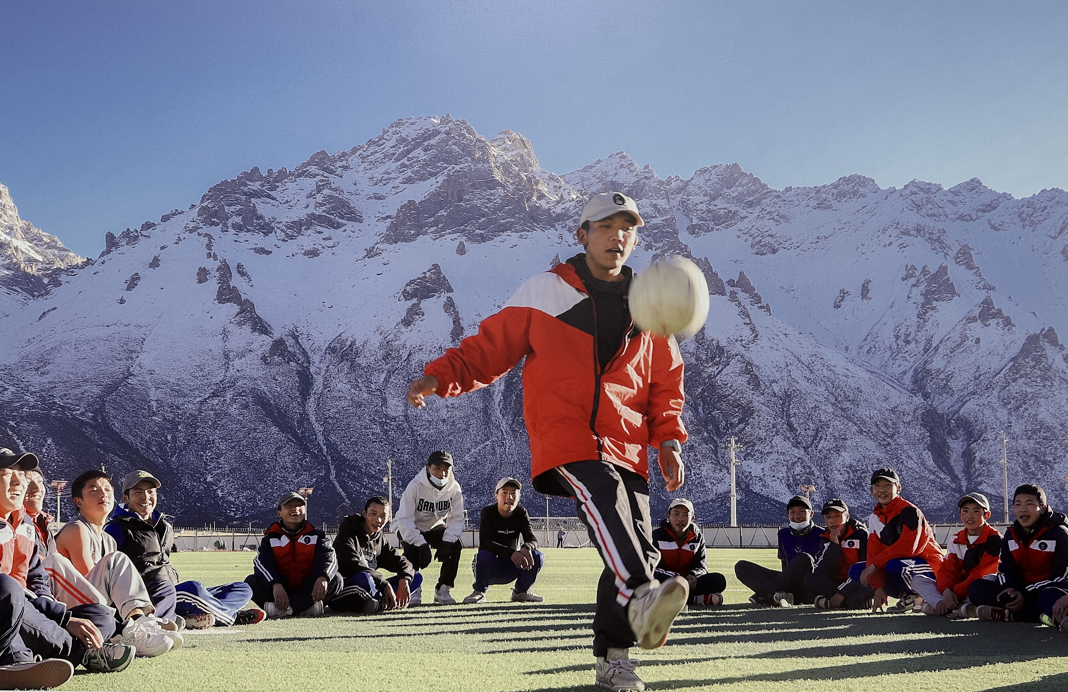 圖為參展攝影作品:《雪山下的足球場(chǎng)》 攝影:貢嘎來(lái)松