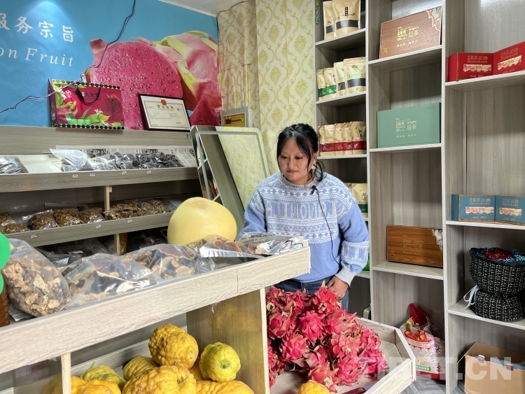 在墨脫縣德興鄉(xiāng)德興村村民西繞措姆的店里,我們看到了整齊擺放的火龍果、香蕉等熱帶水果。在整個墨脫縣,他們夫妻兩人是第一家,也是唯一一家規(guī)范種植火龍果的農戶?!澳莻€時候我老公剛大學畢業(yè),在短視頻上看到有人在種火龍果,他就從網(wǎng)上買了火龍果苗,自己看著視頻學習種植?!?020年夫妻兩人迎來了第一個火龍果收獲季,2022年他們獲得政府民生實事扶持大學生資金30萬元,種植規(guī)模也擴大到了23畝。
