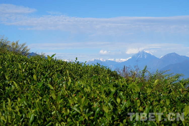 圖為在飄渺茶園內,格林村的茶園和遠處的雪山形成明顯的氣候差異 攝影:德吉卓瑪