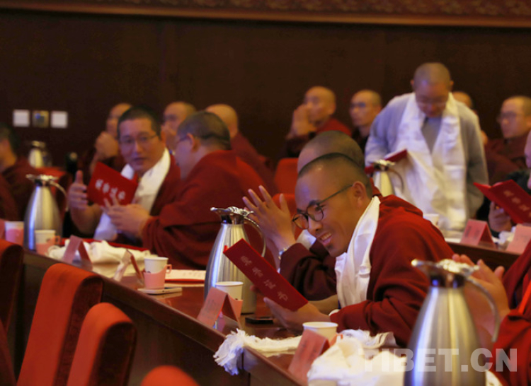 中國(guó)藏語系高級(jí)佛學(xué)院副院長(zhǎng)土多申格主持閉幕會(huì)主旨發(fā)言,副院長(zhǎng)郭莽倉宣布教義闡釋論文獲獎(jiǎng)人員名單,與會(huì)領(lǐng)導(dǎo)向獲獎(jiǎng)?wù)撐淖髡哳C發(fā)證書。