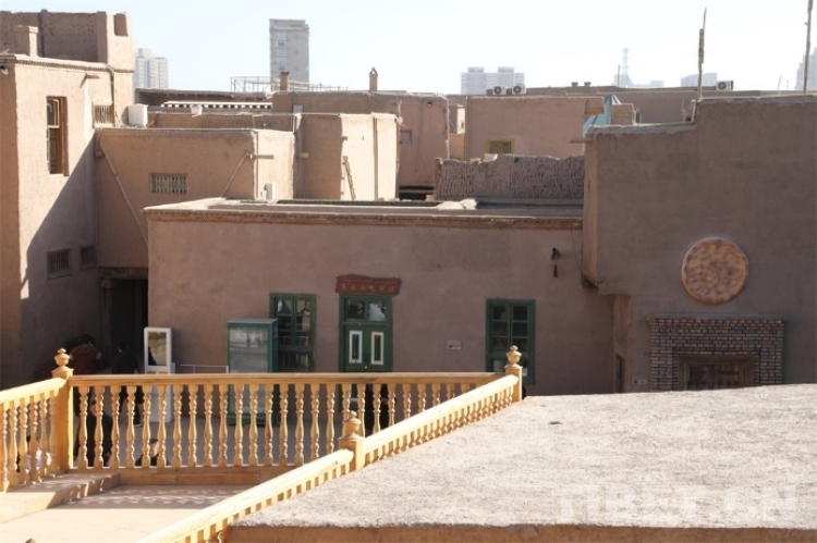 中國(guó)西藏網(wǎng)訊 在中國(guó)新疆維吾爾自治區(qū)喀什市,在繁榮熱鬧的喀什古城對(duì)面,僅一條馬路之隔,坐落著代表喀什傳統(tǒng)建筑靈魂的高臺(tái)民居。高臺(tái)民居又名闊孜其亞貝希老城區(qū),它位于吐曼河西岸一處高約30米、長(zhǎng)寬約400米的黃土高臺(tái)上,其面積約57000平方米。“闊孜其亞貝?!庇懈哐峦撂盏囊馑?,因而高臺(tái)民居又被稱為高崖上的土陶人家。