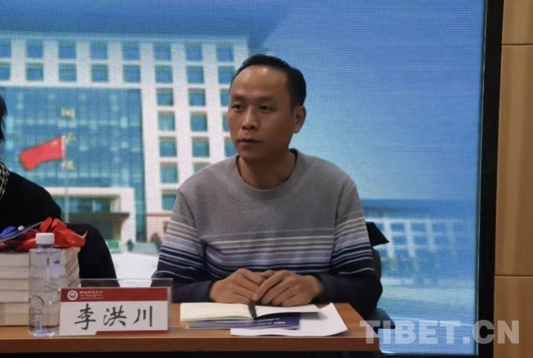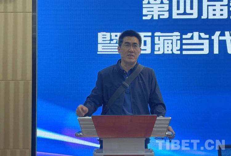 圖為西藏文藝評(píng)論家協(xié)會(huì)秘書(shū)長(zhǎng)李洪川作主題發(fā)言