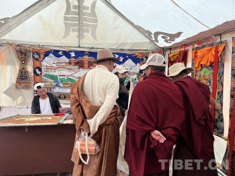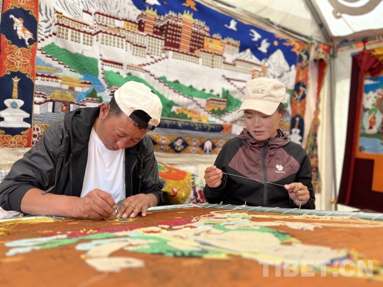 一針一線一幅畫,一時一日一春秋。在潔白的帳篷里,不時有游客進出,欣賞著夫妻二人所制作的白度母珍珠唐卡、布達拉宮堆繡唐卡、“四講四愛”刺繡唐卡等精美作品。土旦旦增與次旦卓瑪手下不僅僅是飛針走線,更是“繡出”他們的美好生活。(中國西藏網(wǎng) 記者/德吉卓瑪)